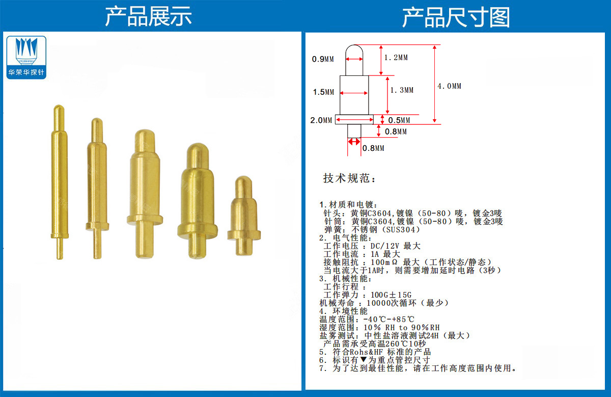 产品介绍:这个针通常用于智能手表,蓝牙耳机上的有充电的功能,但是探针总体来说还是测试的