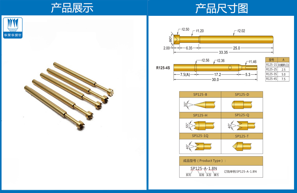 产品简介:SP125探针、2.02mm测试针、总长33.35mm、弹簧针、测试针、探针